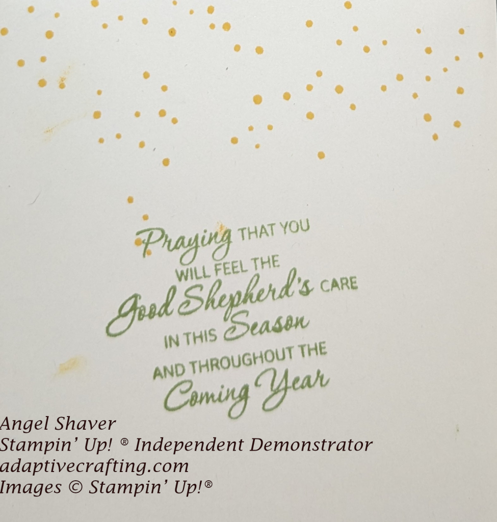 Stamp the shepherd on white cardstock and fussy cut so it can be slipped between the hills.