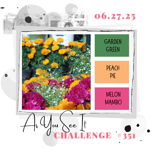 This card was inspired by the colors of the As You See It Challenge #351. Those are perfect summer colors and perfect for tropical summer flowers as well as a fun summer floral tote.