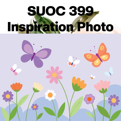 This card was created for the Stampin’ Up! Only Challenge 399. This inspiration photo immediately made me think of the Paper Pumpkin March 2026 kit: Fluttering Garden. I used the floral stamp from the Paper Pumpkin kit and colored in the flowers with Stampin’ Blends in colors chosen to match both the Paper Pumpkin kit and the inspiration photo.. Of course, I had to add some butterflies flying among the flowers. I can’t wait to see what you are inspired to make for SUO Challenge 399. This challenge will stay open through Sunday, April 26. Please join us at SUOC399.